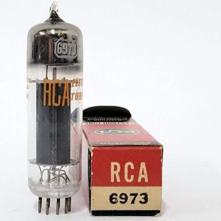 A pair of 6973 tubes was used in the output stage of the 15 watt amplifier. These tubes were designed by RCA to be a proprietary replacement for the EL84. They are more robust, run at a higher plate voltage and have a reputation of providing a warmer and more faithful audio reproduction. They were used in many guitar amplifiers of the day. Many musicians can tell the audible difference between the various types of output tubes. Some companies chose a less-expensive alternative such as the 6BQ5. |